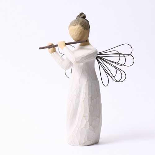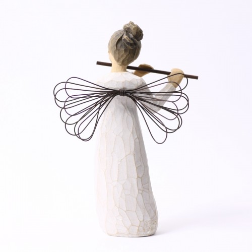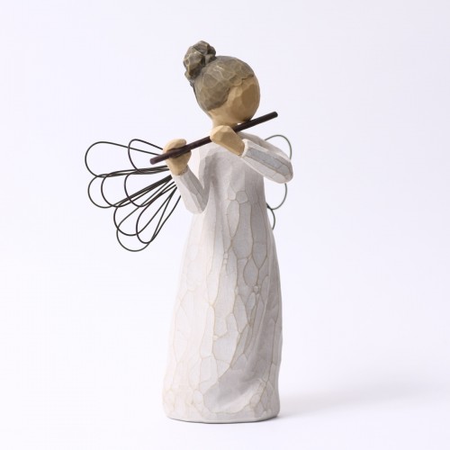 そして実際に手にした感じ。これもクセになってしまうポイントでして、意外とずっしりと重く高品質感があり、表面をなでると彫刻の面が感じられて、なんだかすべすべしていて、ああ彫刻っていいなと、そんな風に感じて頂けるんじゃないかと思います。ウィローツリーのデザインコンセプトは「アンティーク」で、敢えて色褪せたようにペイントされ、天使の羽根には錆び加工がされています。1つ1つペイントされているので、時期によって少しづつ色合いが異なりますので、そういったところも楽しんで頂ければと思っています。