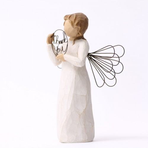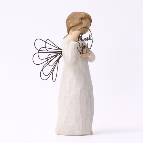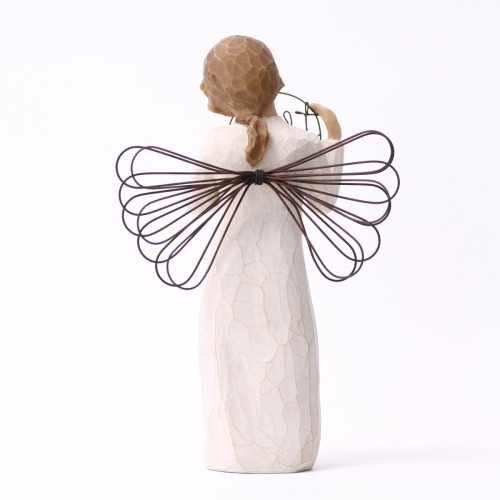 そして実際に手にした感じ。これもクセになってしまうポイントでして、意外とずっしりと重く高品質感があり、表面をなでると彫刻の面が感じられて、なんだかすべすべしていて、ああ彫刻っていいなと、そんな風に感じて頂けるんじゃないかと思います。ウィローツリーのデザインコンセプトは「アンティーク」で、敢えて色褪せたようにペイントされ、天使の羽根には錆び加工がされています。1つ1つペイントされているので、時期によって少しづつ色合いが異なりますので、そういったところも楽しんで頂ければと思っています。