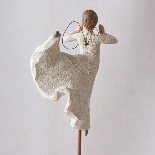 そして実際に手にした感じ。これもクセになってしまうポイントでして、意外とずっしりと重く高品質感があり、表面をなでると彫刻の面が感じられて、なんだかすべすべしていて、ああ彫刻っていいなと、そんな風に感じて頂けるんじゃないかと思います。ウィローツリーのデザインコンセプトは「アンティーク」で、敢えて色褪せたようにペイントされ、天使の羽根には錆び加工がされています。1つ1つペイントされているので、時期によって少しづつ色合いが異なりますので、そういったところも楽しんで頂ければと思っています。