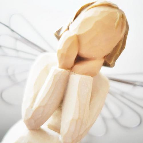 小さな椅子に腰掛けて、身を乗り出しながら、けれどもあくまで聞き手の姿勢を崩さないこの天使は、あなたのために心を開き、あなたの心に寄り添って、あなたが試練を乗り越えることをずっと信じながら、いつもそばにいてくれるでしょう。