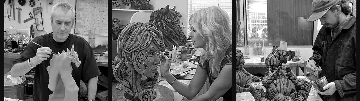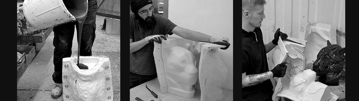 オリジナルの彫刻は、大理石をブレンドした特別な樹脂を流し込んで成型されます。複数のパーツに分かれているものは鉄のピンで接合されます。