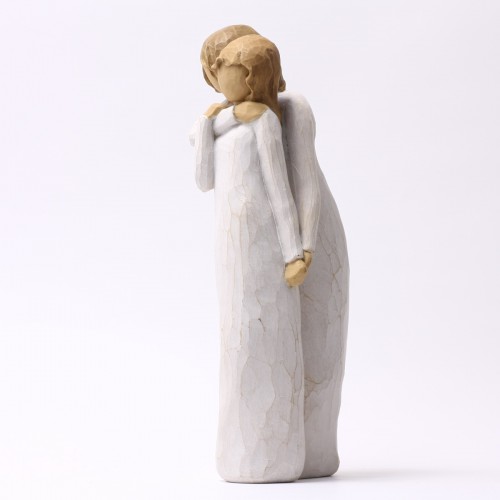 そして実際に手にした感じ。これもクセになってしまうポイントでして、意外とずっしりと重く高品質感があり、表面をなでると彫刻の面が感じられて、なんだかすべすべしていて、ああ彫刻っていいなと、そんな風に感じて頂けるんじゃないかと思います。ウィローツリーのデザインコンセプトは「アンティーク」で、敢えて色褪せたようにペイントされ、天使の羽根には錆び加工がされています。1つ1つペイントされているので、時期によって少しづつ色合いが異なりますので、そういったところも楽しんで頂ければと思っています。