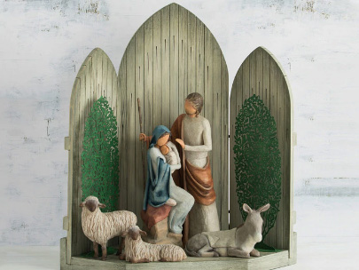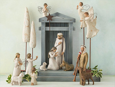 クリスマス・ストーリーはウィローツリーの降誕セットの中でも最もサイズの大きな作品です。教会や礼拝堂などの公共施設や、大きめの建物用のディスプレイに最適です。クリスマスシーズンの特別な装いに。