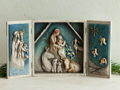 聖家族のシリーズは、小さめのディスプレイスペース用にデザインされた降誕セットです。クリスマスシーズンだけではなく、年を通して飾っておいても邪魔になりません。ナティビティシリーズのアイテムとも組み合わせることができます。